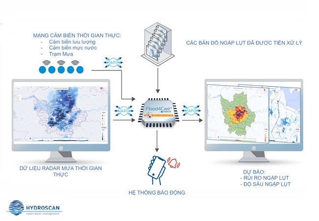 - Mô hình Flood4Cast: mô hình hóa bản đồ ngập lụt, đưa ra những kịch bản, dự báo chính xác trong thời gian sớm.